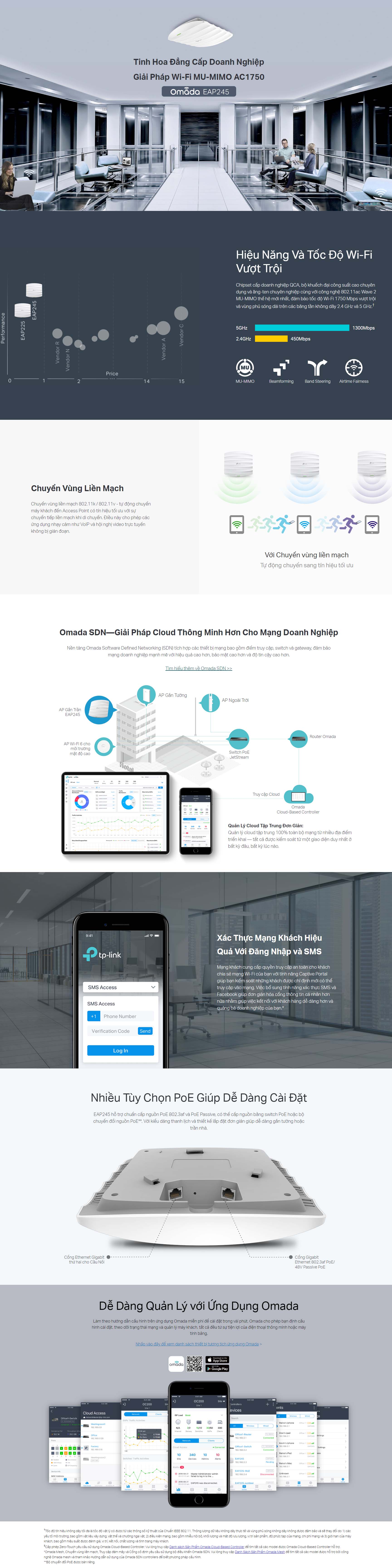 | Cloud Access | Có (Through OC300, OC200, Omada Cloud-Based Controller, hoặc Omada Software Controll |