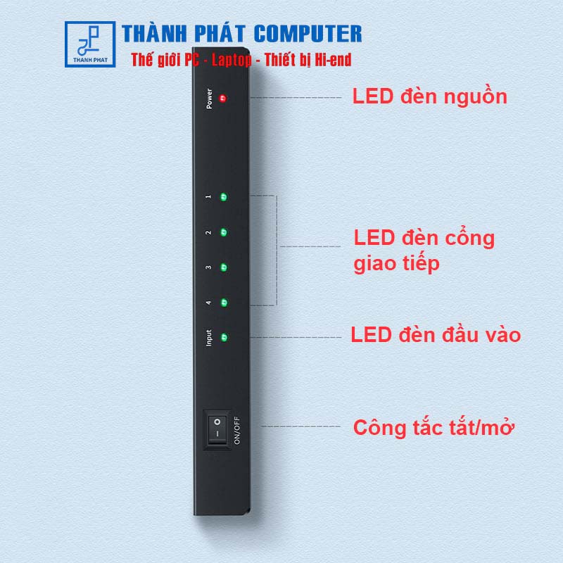 - Tách nguồn tín hiệu HDMI đầu vào, ra 4 cổng tín hiệu HDMI giống nhau