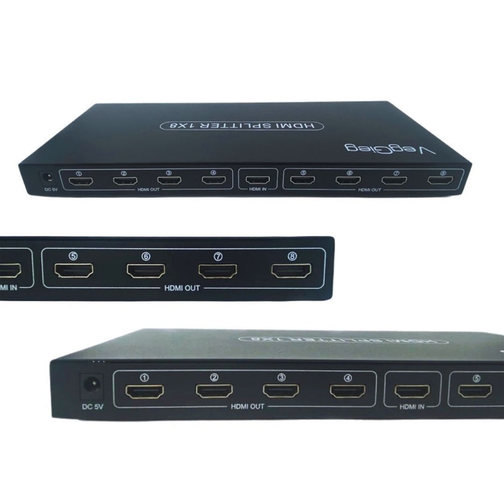- Phân Phối 8 Cổng HDMI: Với khả năng phân phối tín hiệu từ 1 cổng HDMI thành 8 cổng HDMI, Bộ Chia HDMI VegGieg V-HD08 cho phép bạn kết nối nhiều thiết bị như TV, máy chiếu, và màn hình hiển thị cùng lúc mà không làm giảm chất lượng tín hiệu.