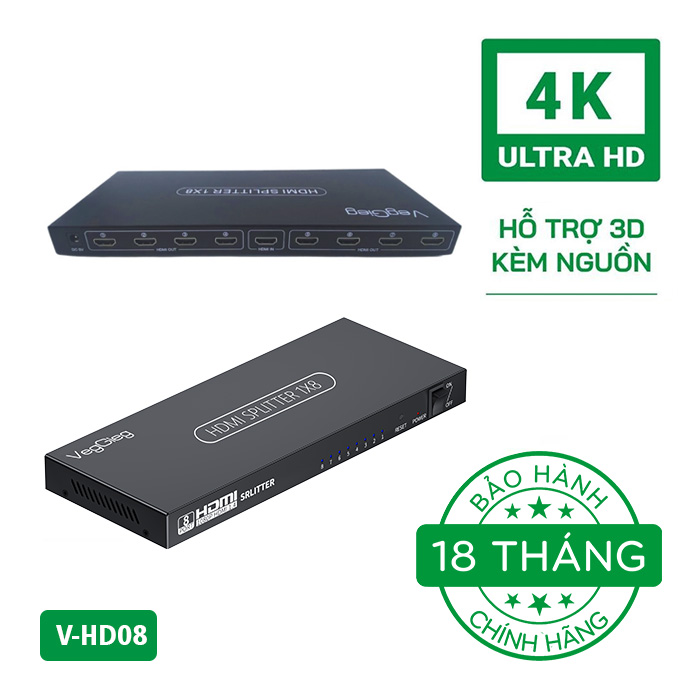Nếu bạn đang tìm kiếm một giải pháp chia tín hiệu HDMI đáng tin cậy với khả năng phân phối ra nhiều thiết bị cùng lúc, Bộ Chia HDMI 1 Ra 8 VegGieg V-HD08 chính là lựa chọn lý tưởng.