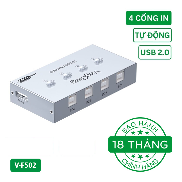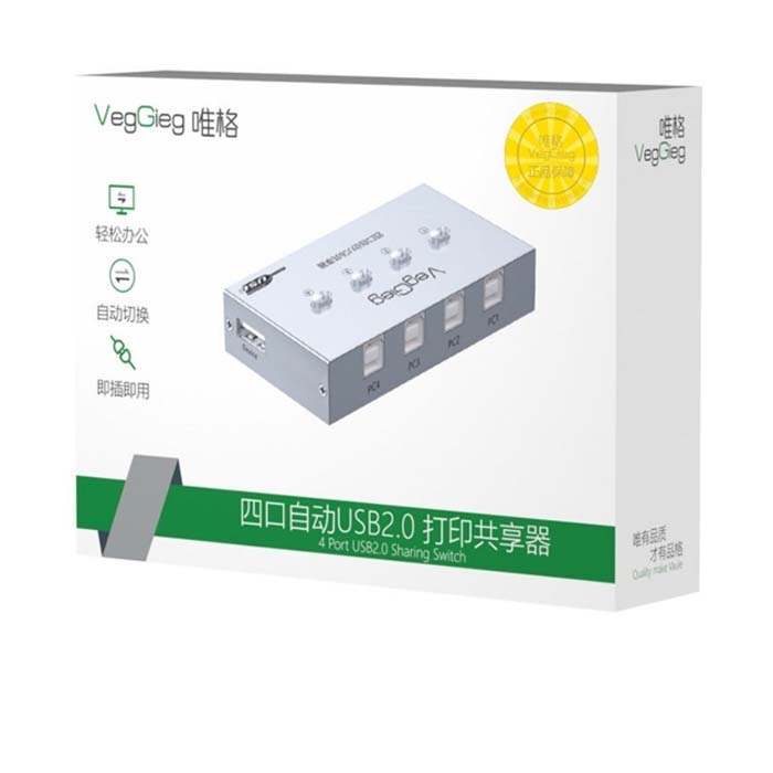 Bộ chia máy in VegGieg V-F502 cho phép 4 máy tính dùng chung 1 máy in mà không cần chia sẻ qua mạng, giúp bảo mật và tránh lây nhiễm virus. Phù hợp cho văn phòng hoặc gia đình có nhu cầu sử dụng chung máy in.