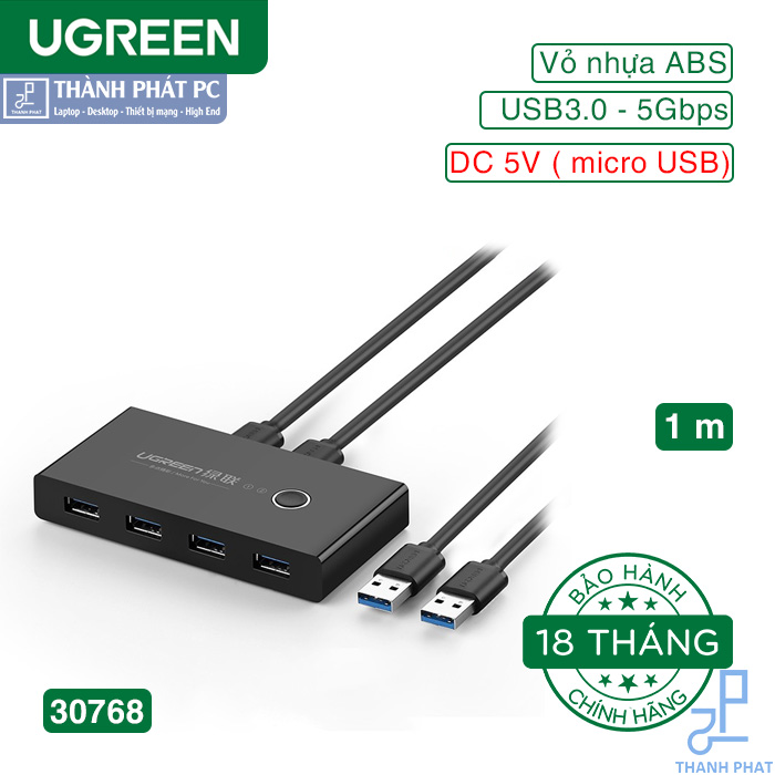 Ugreen 30768 là phụ kiện cao cấp giúp kết nối, chia sẻ dùng chung nhiều thiết bị ngoại vi dùng cổng USB như máy in, máy quét, chuột, phím... cho hai máy tính PC.