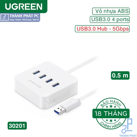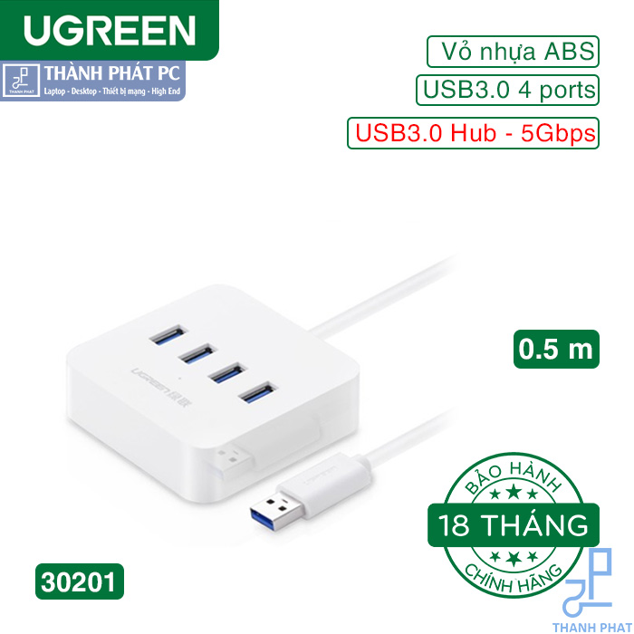 - Bộ chia USB 4 cổng Ugreen 30201 giúp bạn mở rộng thêm 4 cổng USB 3.0 với máy tính của bạn