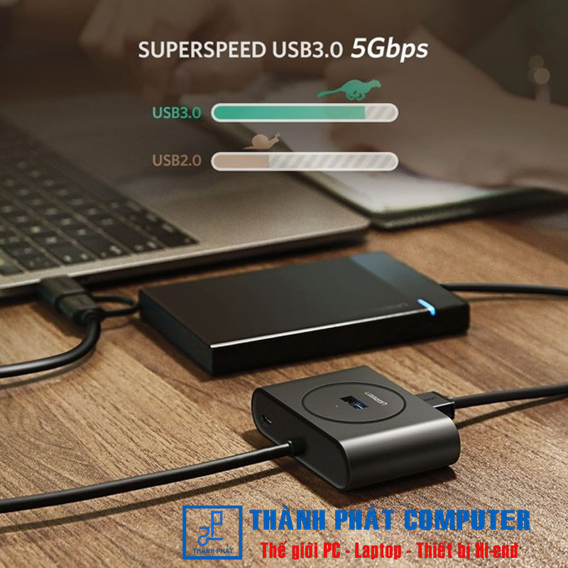 Bộ chia 4 cổng USB 3.0 Ugreen 40850 hỗ trợ cho việc truyền tải dữ liệu siêu nhanh lên đến 5Gbps nhanh hơn gấp 10 lần so với USB 2.0 (480 Mbit/s)