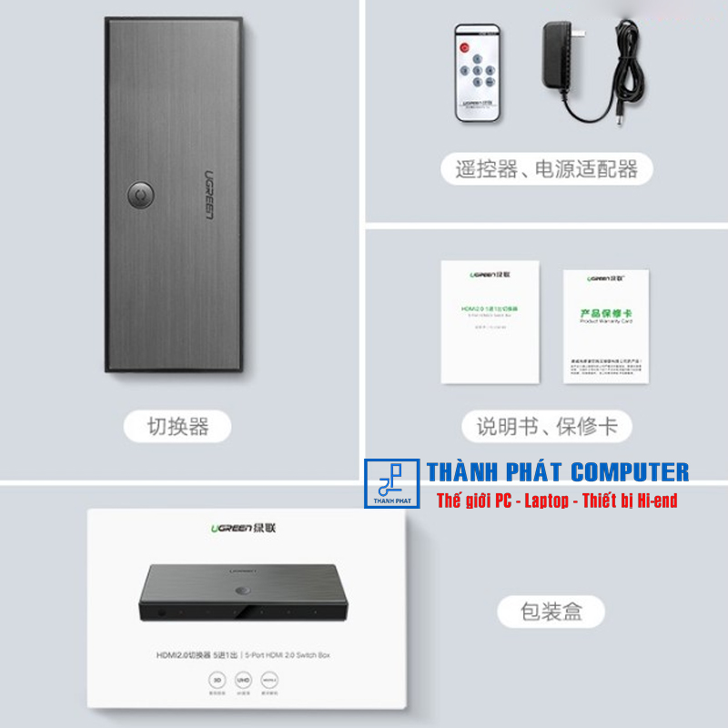 - Bộ gộp HDMI 5x1 Ugreen 50710 được thiết kế nhỏ gọn, vỏ hợp kim cao cấp. Bề mặt tráng nhựa mỏng chống xước.