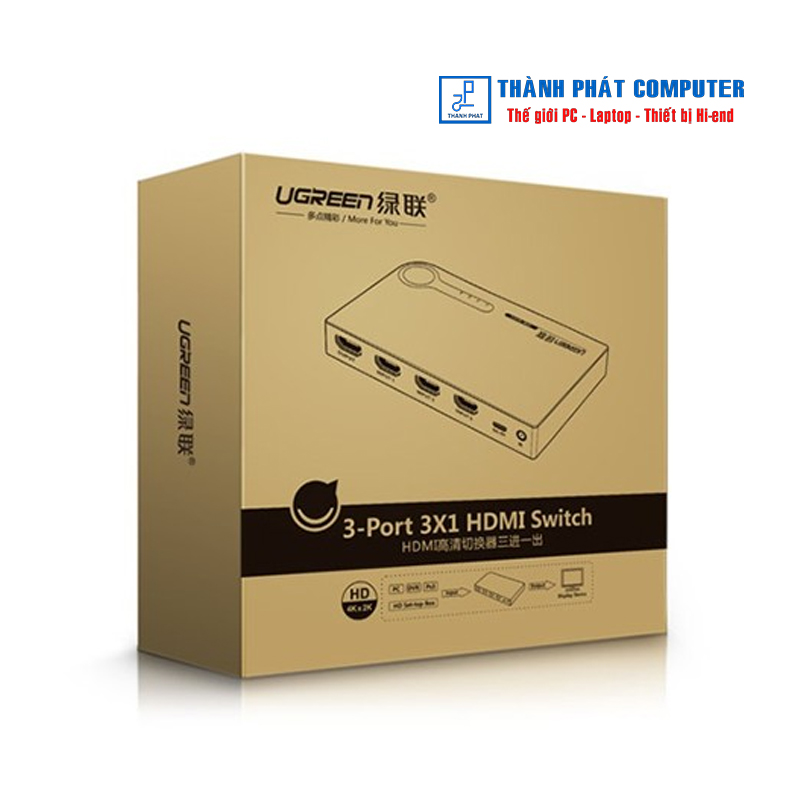 - Ugreen HDMI 3X1 Switcher hỗ trợ 3D, FULLHD 1080P@60hz, 4K@30hz