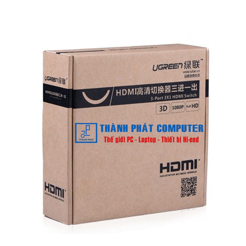 - Ugreen HDMI 1.4 3X1 Switcher hỗ trợ 3D, FULLHD 1080P@60hz