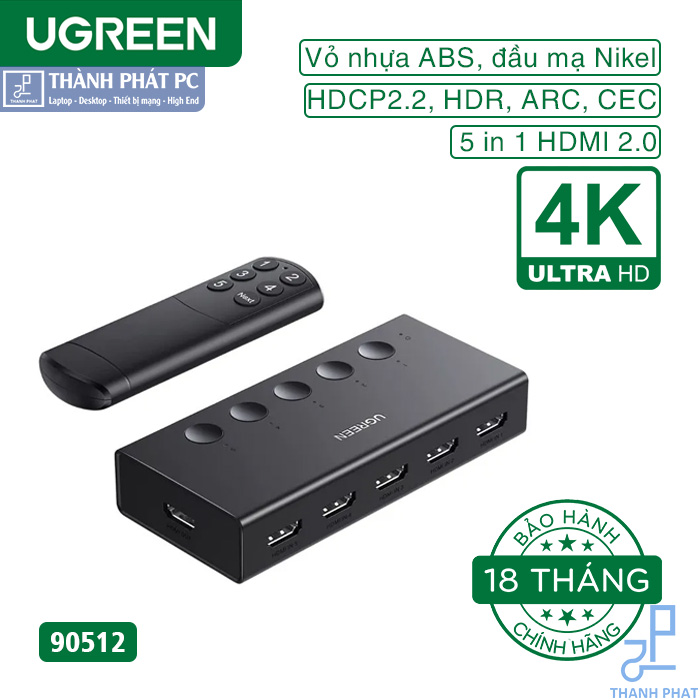 Bộ gộp tín hiệu HDMI Ugreen 90512 hỗ trợ độ phân giải 4k@60Hz và tương thích ngược với 4k@30Hz, 2560*1440@120Hz, 1920*1080@240Hz, tạo ra hình ảnh ấn tượng và khả năng truyền âm thanh không bị mất dữ liệu cho bạn và tận hưởng giao diện 3D. UGREEN HDMI Switch cũng hỗ trợ HDMI 2.0/1.4, HDCP2.2/1.4, VRR và Dynamic HDR Chroma 4:2:0 / 4:2:2 / 4:4:4. Tất cả các cổng HDMI đều hỗ trợ HDR/3D/CEC. Mẹo: Nếu bạn muốn 4K@60Hz, cáp HDMI phải có đầu vào trong phạm vi 3,5 mét và đầu ra trong phạm vi 3,5 mét.