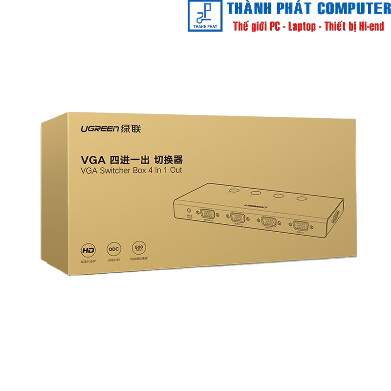 Bộ gộp 4 vào 1 ra VGA chính hãng Ugreen 50279 có thể từ gộp tín hiệu VGA từ 4 máy tính vào 1 màn hình ,chuyển đổi 4 máy tính bằng tay để có thể dùng chung một màn hình, máy chiếu.