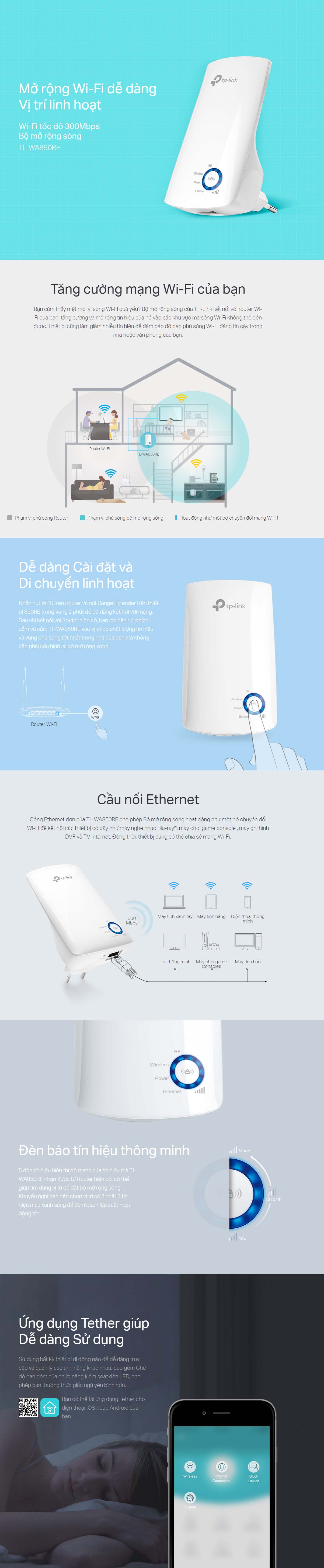 | Sản phẩm bao gồm | Bộ mở rộng sóng Wi-Fi tốc độ 300Mbps TL-WA850RE Hướng dẫn cài đặt nhanh |