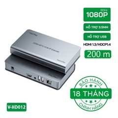V-HD012 là bộ mở rộng HDMI sử dụng cáp mạng Cat5e/6 để truyền tín hiệu hình ảnh, âm thanh và USB điều khiển từ máy tính đến màn hình hiển thị từ xa lên tới 200mét. Thiết bị hỗ trợ độ phân giải Full HD 1080P, tích hợp chức năng KVM (Keyboard, Video, Mouse), cho phép bạn vừa truyền hình ảnh, vừa điều khiển máy tính từ xa qua cổng USB.