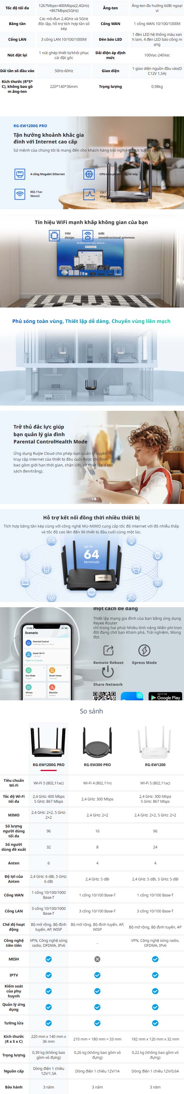 RUIJIE RG-EW1200G Pro là dòng sản phẩm Router wifi cho gia đình chất lượng, chính hãng. Đây là bộ định tuyến không dây băng tần kép Gigabit được thiết kế cho tất cả các loại hình gia đình và các trường hợp SOHO khác.