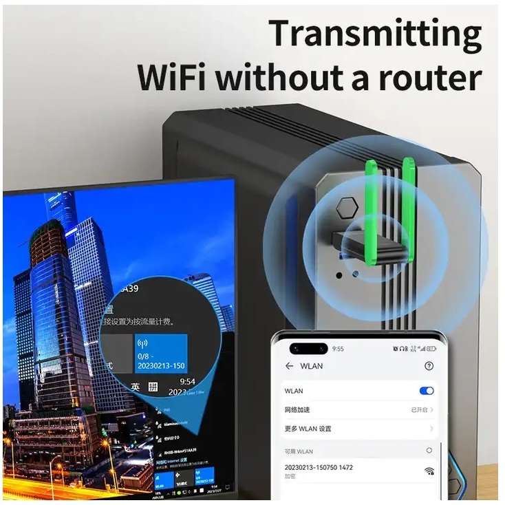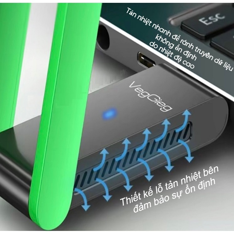 - Tốc độ cao: USB thu phát Wifi với tốc độ 1400Mbps, gồm 2 anten cho phép kết nối với tốc độ 2.4GHz lên đến 300Mbps và 5GHz lên đến 867Mbps.