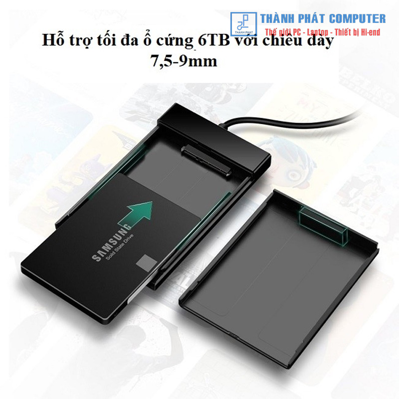 Hỗ trợ HDD 2.5 inch và SSD tối đa 6TB. ( Độ dày ổ cứng phải từ 7mm đến 9,5mm.)