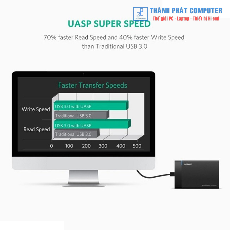 Giao diện SATA của SSD hỗ trợ giao thức truyền nhanh UASP, nhanh hơn 70% so với USB 3.0.