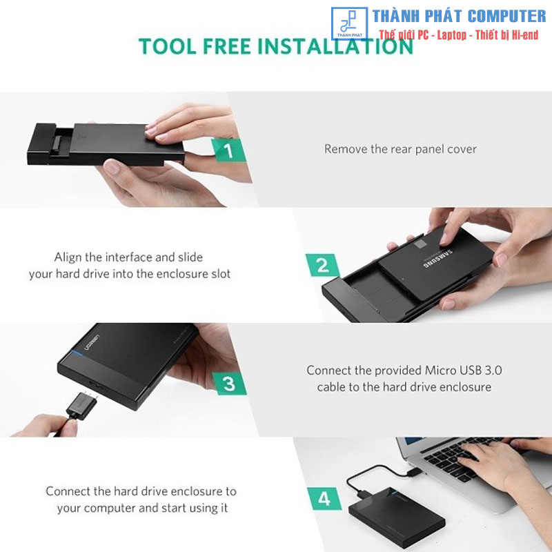 Hộp đựng ổ cứng gắn ngoài 2.5 inch USB 3.0 Ugreen 30848 có thể dễ dàng kết nối ổ cứng 2,5 inch với PC, laptop và các thiết bị khác để truyền dữ liệu giúp bảo vệ khỏi những vết trầy xước bên ngoài ổ cứng sata lưu trữ dữ liệu. Tối đa hóa việc sử dụng ổ cứng 2.5 inch và SSD.