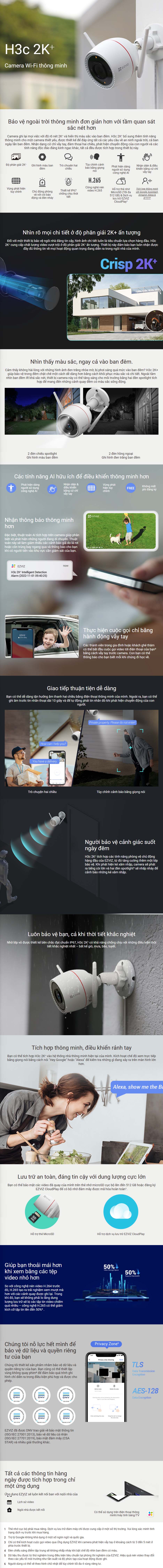 | Bộ nhớ đám mây | Hỗ trợ dịch vụ lưu trữ EZVIZ CloudPlay (Phải đăng ký) |