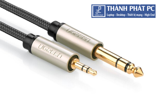 Cáp âm thanh Audio 3.5mm sang 6.35mm dài 2m Ugreen 10628 cao cấp. Cáp được thiết kế để kết nối các công cụ như synths, bàn phím, guitar và các thiết bị âm thanh chuyên nghiệp khác.