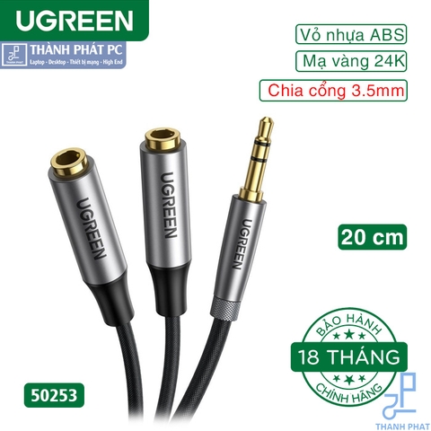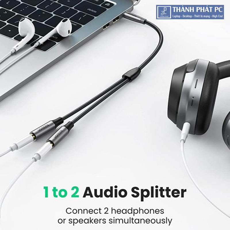 Cáp chia cổng tai nghe 3.5mm 1 ra 2 cao cấp Ugreen 50253 là phụ kiện tuyệt vời giúp bạn chia cổng audio 3.5mm trên điện thoại, máy tính bảng, laptop, máy nghe nhạc... từ 1 cổng thành 2 cổng, giúp kết nối cùng lúc 2 tai nghe, loa... cùng lúc.