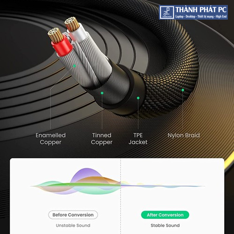 Cáp chia audio 3.5mm Ugreen 50253 đưởng trang bị lớp vỏ nhựa ABS cao cấp, các điểm tiếp xúc được mạ vàng 24k chống oxy hoá, vật liệu dây dẫn thuần đồng 100% mang đến độ bền, khả năng dẫn truyền tín hiệu ổn định, lọc âm tốt nhất cho sợi cáp.