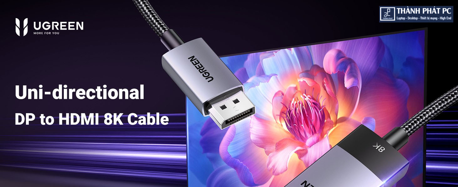 Cáp Ugreen 80395 DP sang HDMI cho phép bạn kết nối các thiết bị DP (ví dụ: PC, máy tính xách tay hoặc card đồ họa) với màn hình, máy chiếu, HDTV để truyền tín hiệu âm thanh, video. Nó hỗ trợ độ phân giải lên đến 8K@60Hz và làm mới cao (hỗ trợ ngược 4K@120Hz), mang đến cho bạn chế độ xem 3D chân thực và trải nghiệm đắm chìm không bị rách. Lưu ý: Chúng tôi khuyên bạn nên kết nối nguồn DP với màn hình HDMI trực tiếp để tránh lỗi hiển thị thay vì thông qua đế cắm hoặc hub do hạn chế về phần cứng