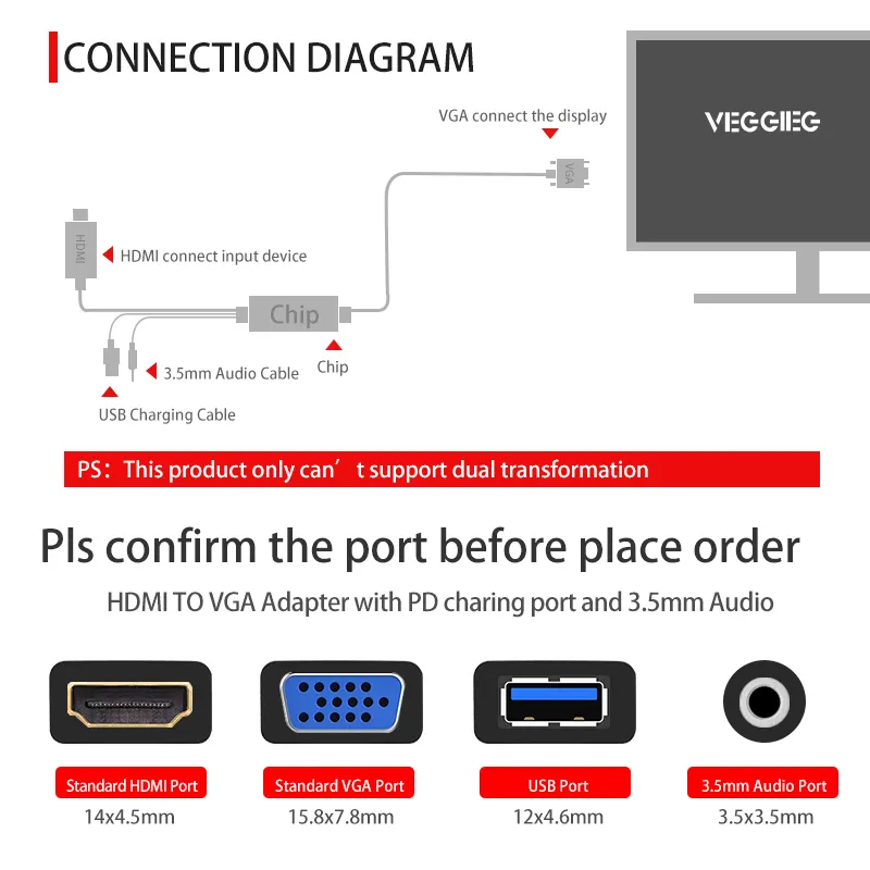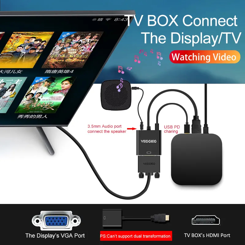 Tính năng của dây cáp chuyển đổi HDMI to VGA VEGGIEG VZ612