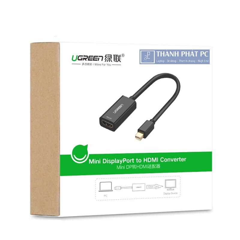 Cáp chuyển đổi Mini Displayport sang HDMI Ugreen 40360 thiết kế để chuyển đổi Mini Displayport hoặc Thunderbolt sang HDMI Tivi, HDTV, máy chiếu.en 10461 thiết kế để chuyển đổi Mini