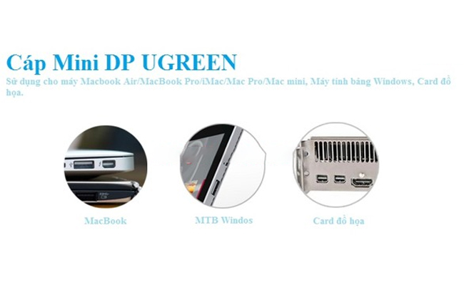 - Cáp có giao diện: một đầu là giao diện Mini DP (đầu ra), một đầu của giao diện HDMI (đầu vào)