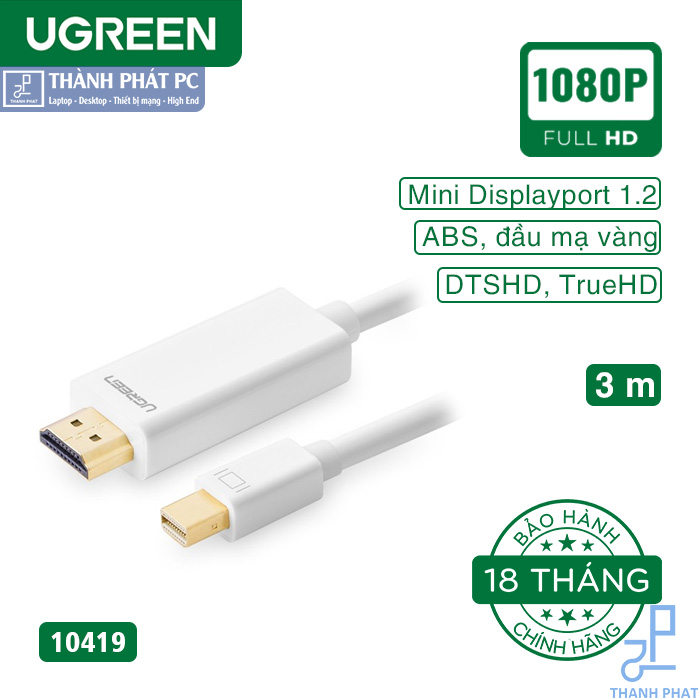 Cáp chuyển mini DisplayPort to HDMI cho Macbook air, Macbook Pro Ugreen 10419 sử dụng giải pháp NXP hỗ trợ tốc độ truyền tải băng thông lên đến 10.8Gbps và hỗ trợ độ phân giải 1080p HD, và hỗ trợ TrueHD, DTSHD thế hệ tiếp theo với tín hiệu lossless hoàn hảo, Plug and Play. Khả năng truyền tải chất lượng hình ảnh sống động như thật, độ nét tinh tế, siêu tốt