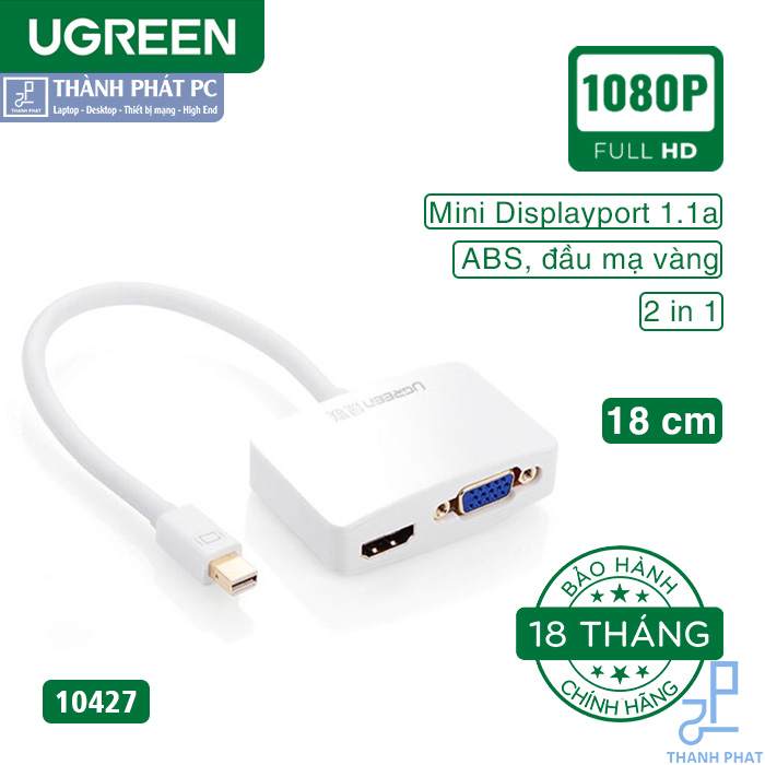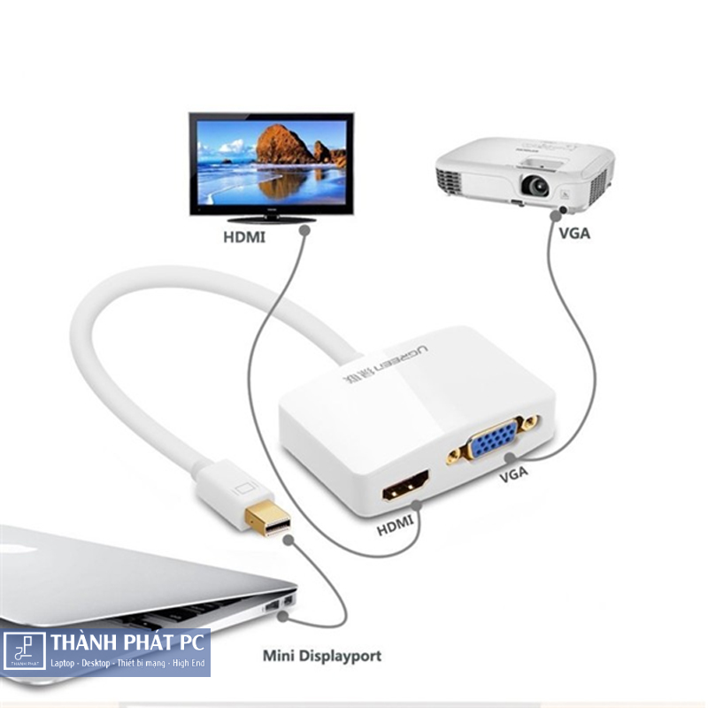 Cáp chuyển đổi Mini Displayport to HDMI và VGA Ugreen 10427 cho phép bạn mở rộng hiển thị từ màn hình của máy tính Mac của bạn bằng một giao diện HDMI hay VGA.