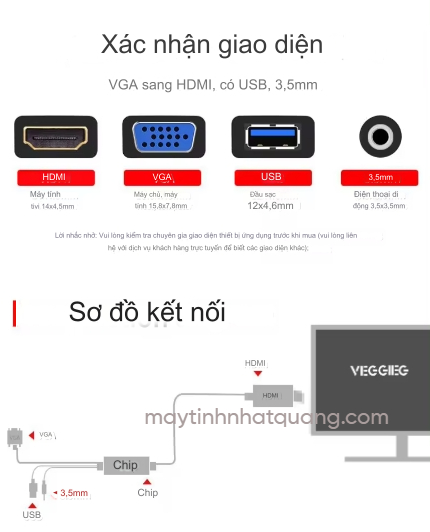 Cáp chuyển đổi VGA to HDMI có kèm audio V-Z206 Veggieg là một sản phẩm chất lượng cao, giúp người dùng dễ dàng chuyển đổi tín hiệu từ các thiết bị có cổng VGA sang các thiết bị hiển thị HDMI. Sản phẩm này đặc biệt hữu ích khi bạn muốn kết nối các máy tính, laptop cũ với màn hình hiện đại hoặc TV có cổng HDMI