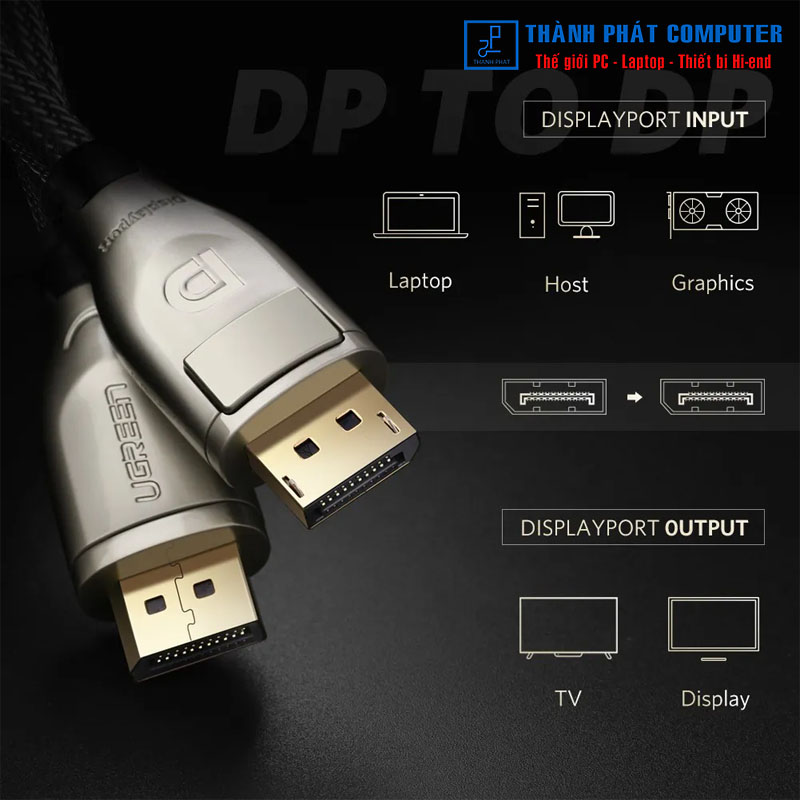 Cáp Displayport sang Displayport dài 1.5m Ugreen UG-30119 dùng kết nối từ máy tính, Laptop, card màn hình có cổng Displayport như : Nvidia, AMD, intel...