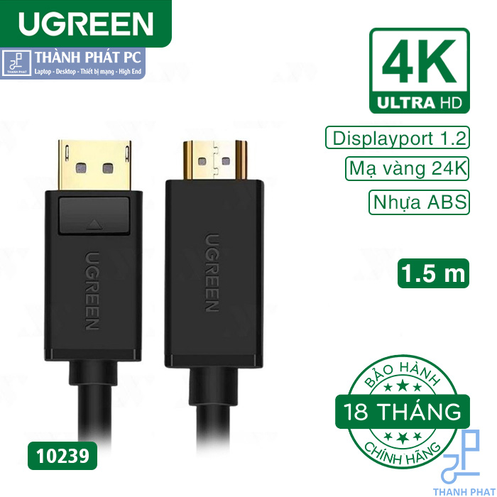 - Ugreen 10239 có kết nối đầu vào : Displayport dương / đầu ra : HDMI dương