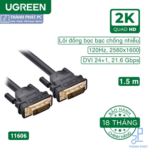 Cáp DVI to DVI Ugreen UG-11606 được thiết kế có vỏ bọc bạc chống nhiễu, lõi sợi cáp làm bằng đồng nguyên chất đảm bảo truyền tín hiệu với tốc độ cao một cách mượt mà khi xuất tín hiệu hình ảnh HD