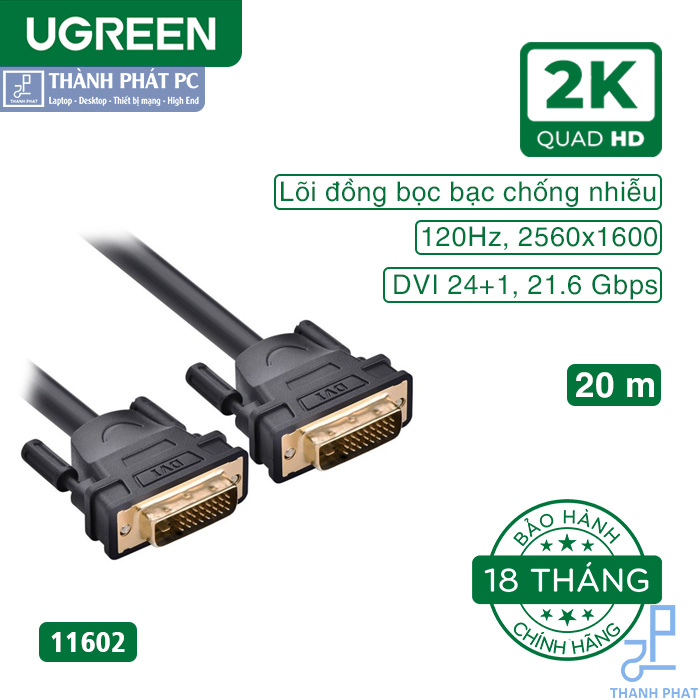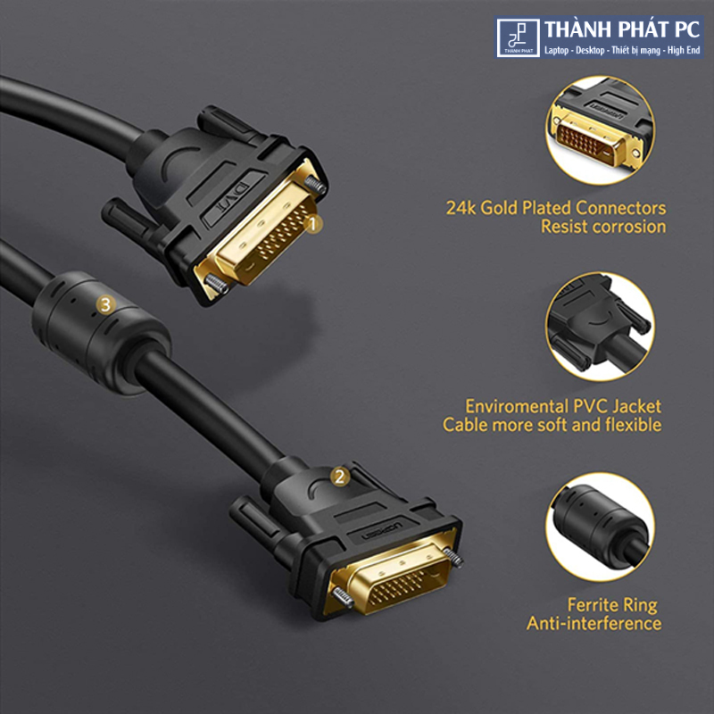 Cáp DVI to DVI Ugreen UG-11602 được thiết kế có vỏ bọc bạc chống nhiễu, lõi sợi cáp làm bằng đồng nguyên chất đảm bảo truyền tín hiệu với tốc độ cao một cách mượt mà khi xuất tín hiệu hình ảnh HD
