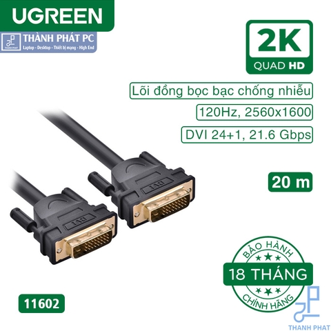 - Cáp DVI to DVI 20m truyền tín hiệu hình ảnh sắc nét full HD, hỗ trợ định dạng phim và video 3D.