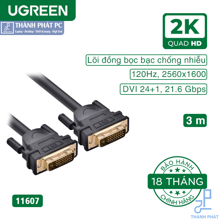 Cáp DVI to DVI Ugreen UG-11607 được thiết kế có vỏ bọc bạc chống nhiễu, lõi sợi cáp làm bằng đồng nguyên chất đảm bảo truyền tín hiệu với tốc độ cao một cách mượt mà khi xuất tín hiệu hình ảnh HD