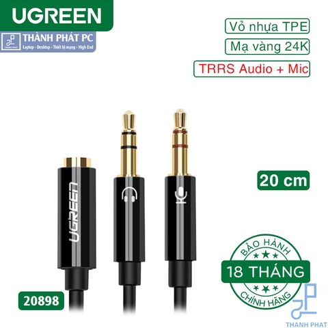 Cáp gộp Audio 3.5mm 2×1 Ugreen 20898 là phụ kiện cao cấp dùng chuyển đổi hai cổng audio 3.5mm (Mic & Headphone) trên máy tính, laptop của bạn thành một cổng Audio 3.5mm (Female).