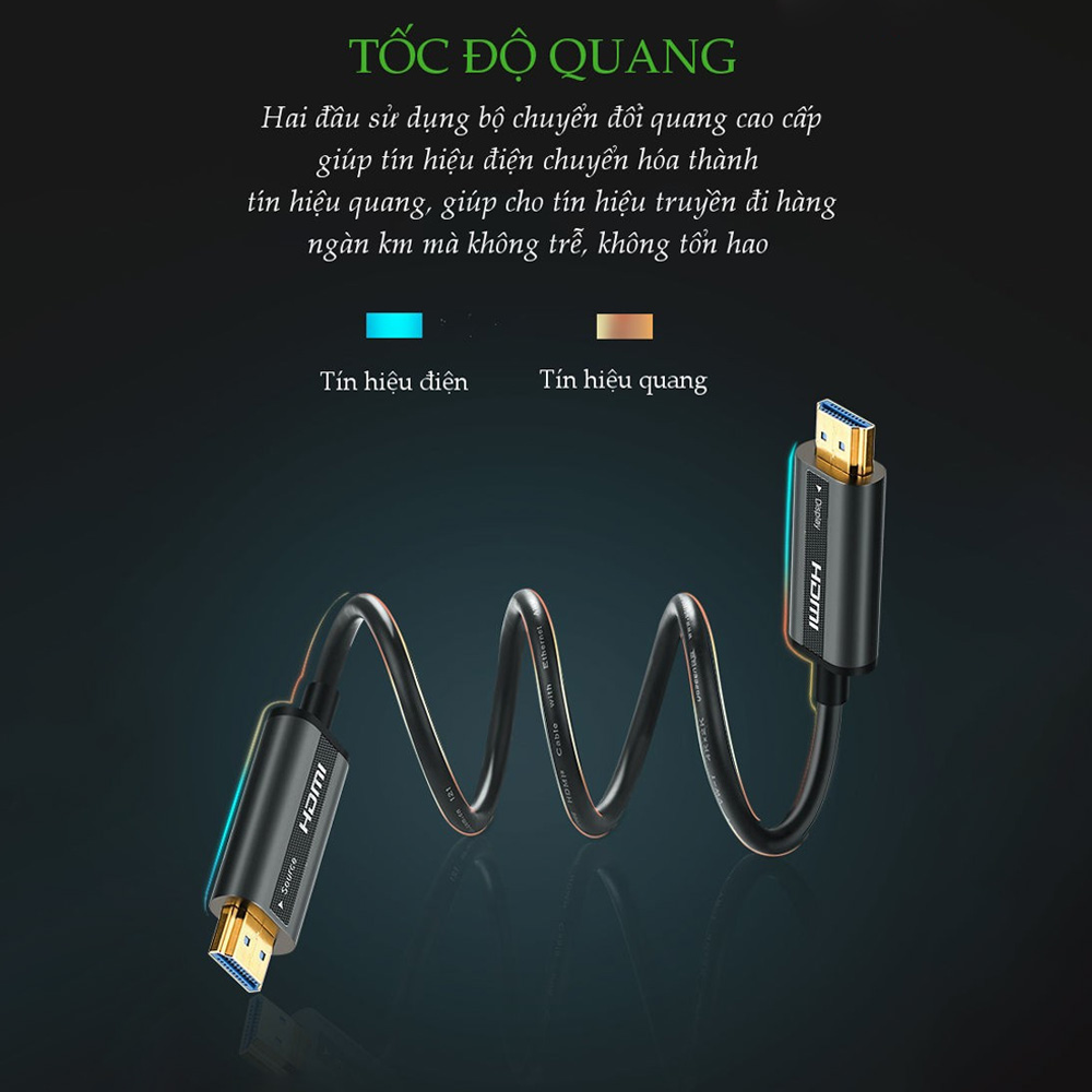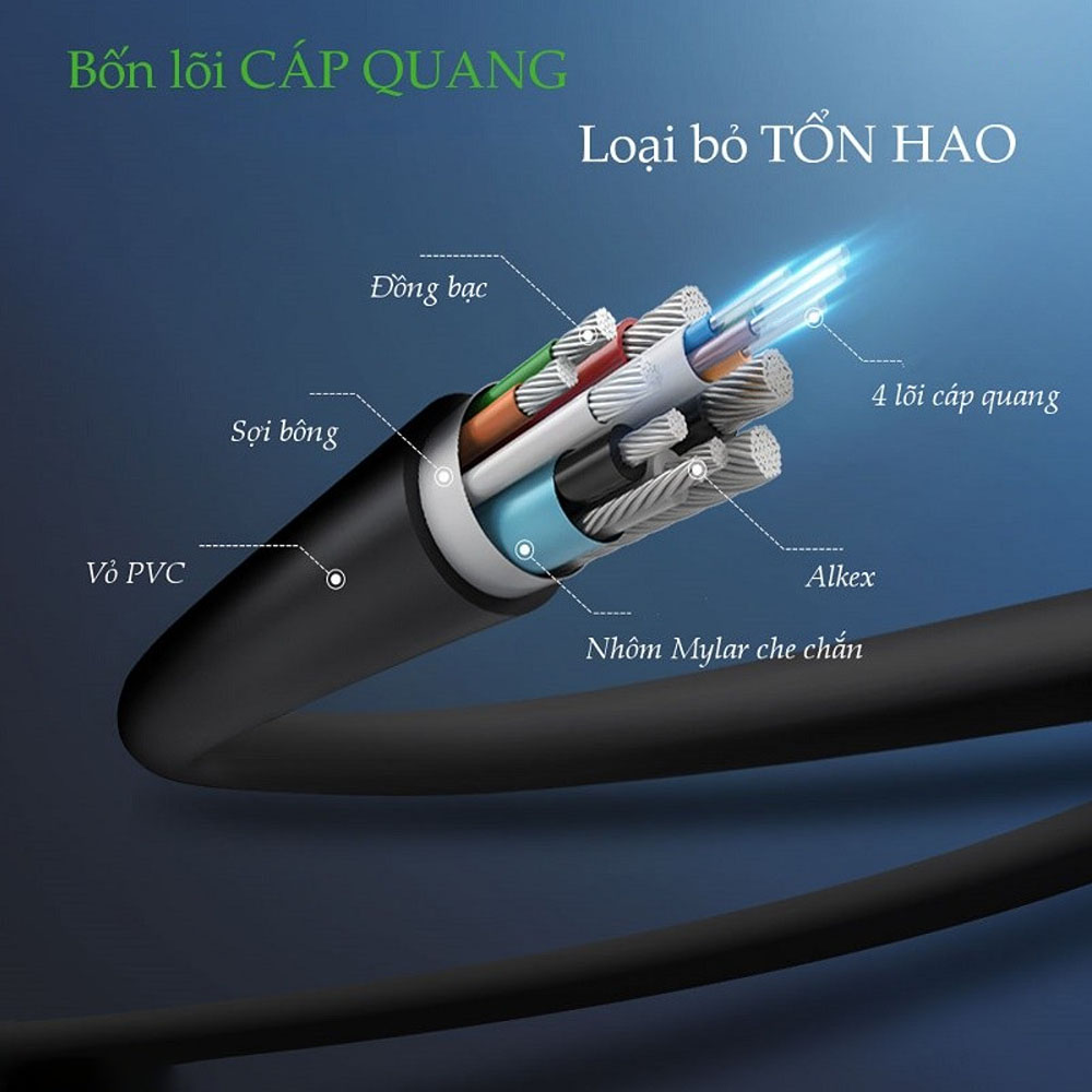 - Hai đầu kết nối của sợi cáp đều sử dụng bộ chuyển đổi quang điện cao cấp giúp tín hiệu điện chuyển đổi thành tín hiệu quang giúp tín hiệu truyền tốt hơn không hề bị suy hao hay có độ trễ.