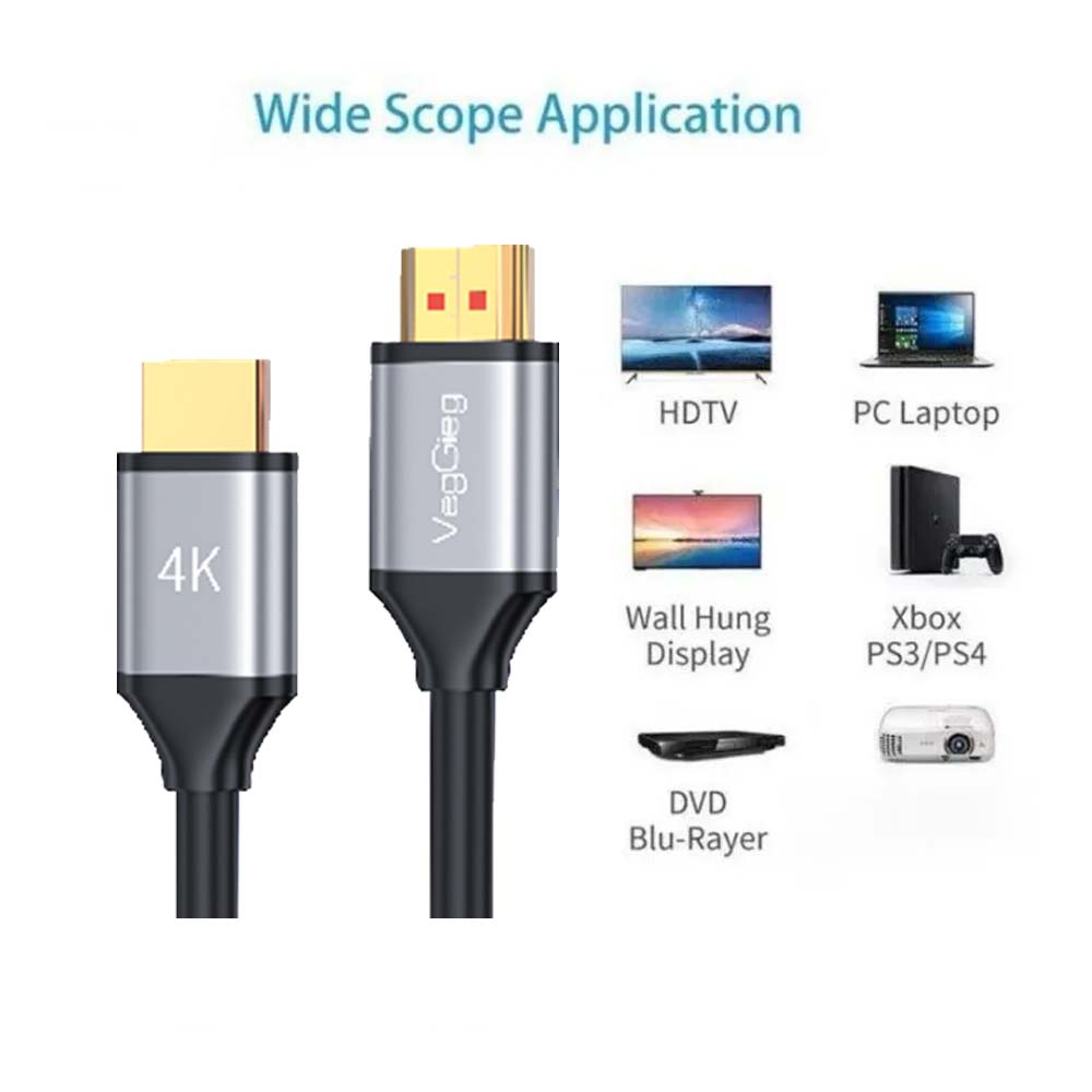 Cáp HDMI 2.0 VEGGIEG cao cấp là lựa chọn lý tưởng để biến màn hình TV hoặc máy chiếu của bạn thành một trung tâm giải trí đa phương tiện đỉnh cao.