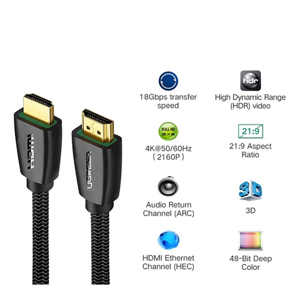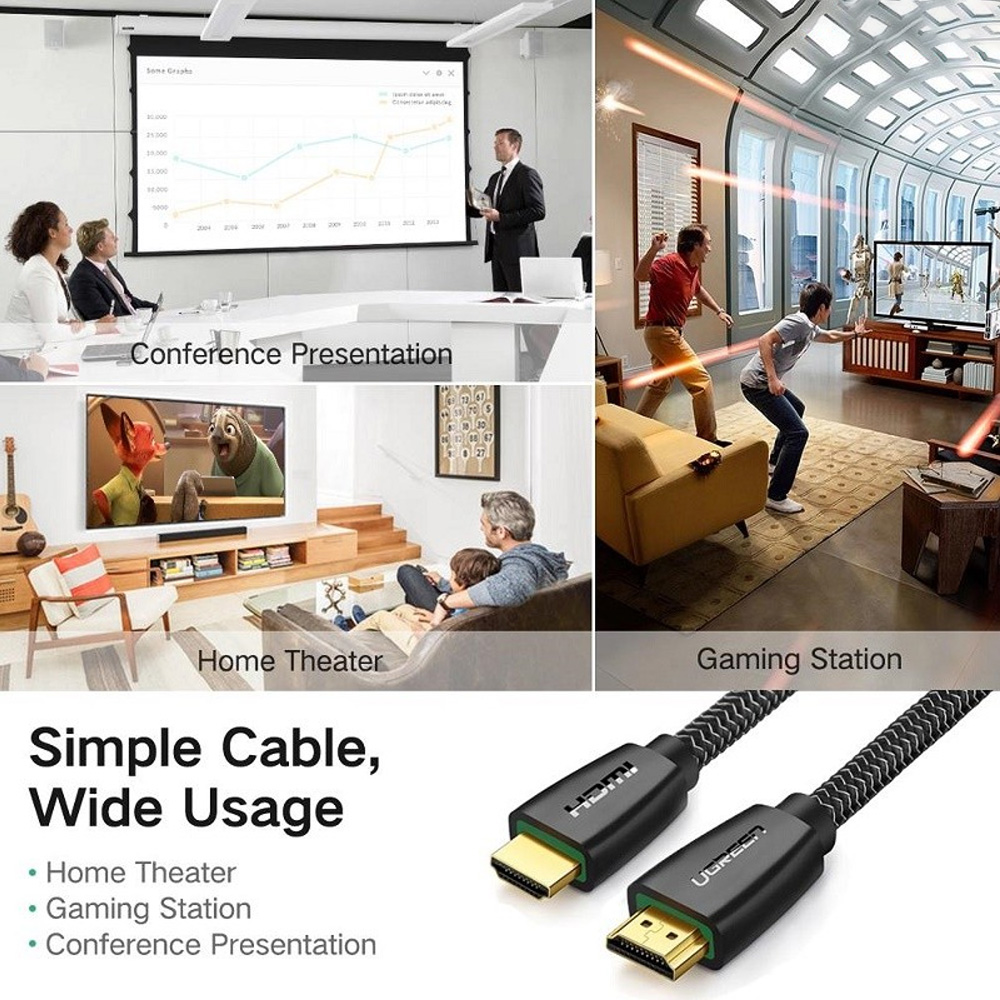 Dây HDMI 2.0 chính hãng Ugreen 50464 cho phép TV HDMI kết nối với một thiết bị để gửi dữ liệu âm thanh "ngược dòng" với một hệ thống âm thanh vòm, loại bỏ sự cần thiết cho một cáp âm thanh riêng biệt.