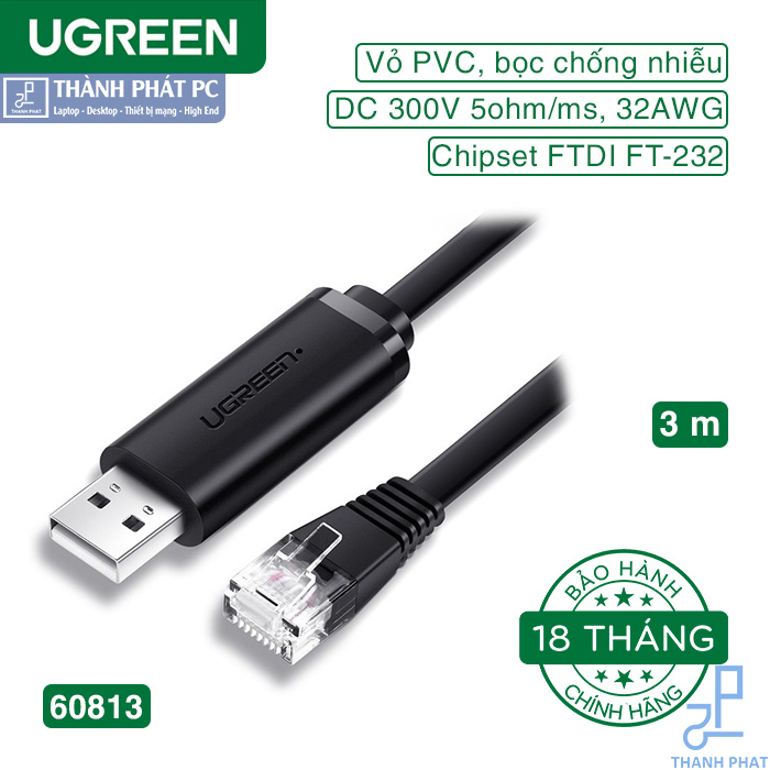 Cáp Console USB chính hãng Ugreen 60813 (cáp cisco, cáp lập trình, cáp điều khiển) chuyên dùng lập trình cho các thiết bị mạng như: server, hub, switch, router, cân bằng tải, thiết bị mạng khác...