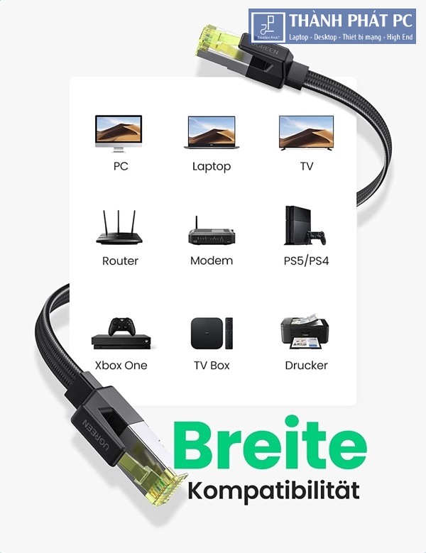 Vỏ bọc Nylon tương thích cho PC, máy tính xách tay, máy chủ máy tính, máy in, bộ định tuyến, modem, hộp chuyển mạch mạng, trình phát đa phương tiện mạng, NAS, điện thoại VoIP, IP cam, Raspberry Pi 4, PS3, PS4, Nintendo Switch, X-box, dữ liệu đám mây máy chủ, bảng vá, bộ ghép nối, trung tâm, TV thông minh và hơn thế nữa với đầu nối RJ45.