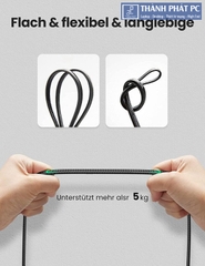 Cáp mạng ethernet Cat7 Ugreen 40166 dẹt vỏ bọc Nylon hỗ trợ băng thông lên đến 600MHz và truyền dữ liệu với tốc độ lên đến 10Gbps. Bất kể khi bạn đang lướt Internet, phát trực tuyến video, nghe nhạc hoặc chơi game trực tuyến, mạng chậm sẽ không gặp phải rắc rối nào.