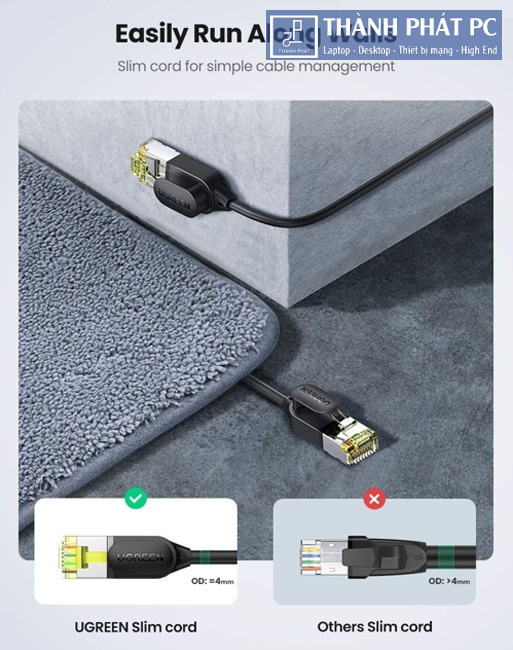 Dây siêu mỏng làm cho cáp LAN này siêu linh hoạt và dễ quản lý hơn nhiều khi luồn dưới thảm, cửa, ngăn kéo hoặc dọc theo tường.