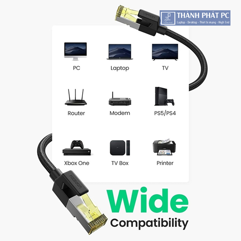 Tương thích cho PC, máy tính xách tay, máy chủ máy tính, máy in, bộ định tuyến, modem, hộp chuyển mạch mạng, trình phát đa phương tiện mạng, NAS, điện thoại VoIP, IP cam, Raspberry Pi 4, PS3, PS4, Nintendo Switch, X-box, dữ liệu đám mây máy chủ, bảng vá, bộ ghép nối, trung tâm, TV thông minh và hơn thế nữa với đầu nối RJ45.