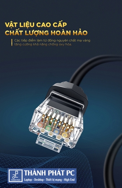 Thiết kế hai đầu nối RJ45 mạ vàng 24k, phản ứng nhạy hơn. Dây đồng được bọc bằng PVC thân thiện với môi trường dày 0.8mm, bền hơn, dẻo và chống lão hóa.