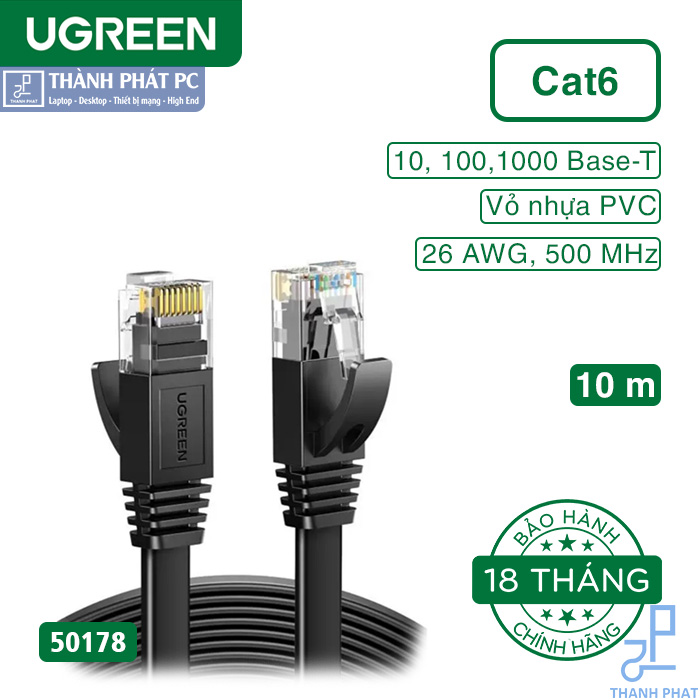 Cáp mạng Cat6 dài 10m chính hãng Ugreen 50178 chất lượng cao để giảm thiểu sự mất mát tín hiệu và điện năng tiêu thụ trong khoảng cách dài cáp này cung cấp hiệu suất lên đến 3500 MHz và phù hợp cho 10-100-1000 (Fast Ethernet) và nó được thiết kế để sử dụng trên các mạng Ethernet / RJ45.