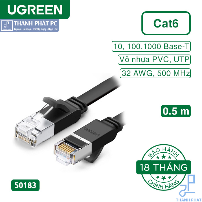 Cáp mạng đúc sẵn Cat6 dài 0,5m chính hãng Ugreen 50183 chất lượng cao để giảm thiểu sự mất mát tín hiệu và điện năng tiêu thụ trong khoảng cách dài cáp này cung cấp hiệu suất lên đến 3500 MHz và phù hợp cho 10-100-1000 (Fast Ethernet) và nó được thiết kế để sử dụng trên các mạng Ethernet / RJ45.