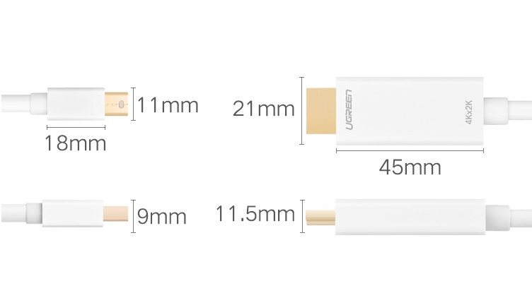 Cáp có giao diện: một đầu là giao diện Mini DisPlayport , một đầu của giao diện HDMI .
